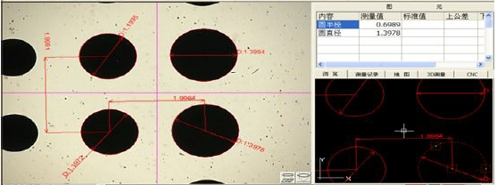 對比功能:程式可直接輸入.DXF文件,在影像測量區實現工件實物放大影像與標準設計圖作直觀的測量比對。