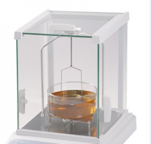 ②將樣品完全浸入水中,測(cè)水中重量,按M鍵記憶,直接顯示密度值。