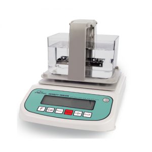 - 將密度計通電,在水槽中裝入水至刻線處,放在主機上,再將稱量臺裝上;