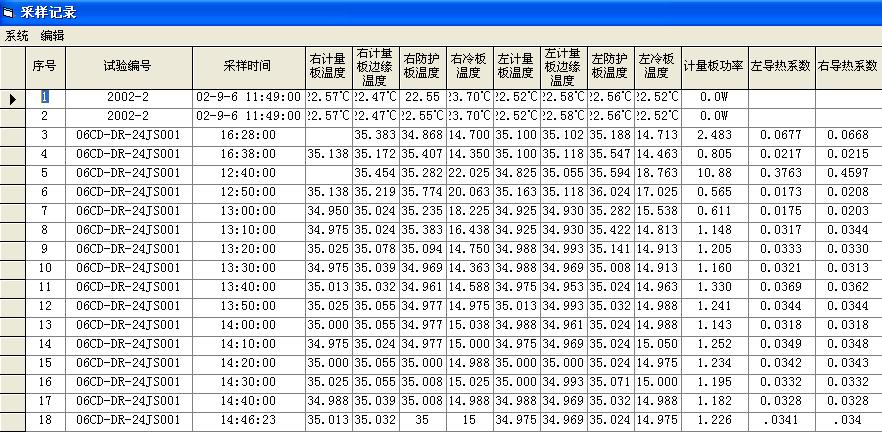 • 點擊主畫面“試驗”菜單下“采樣記錄”即可進入測試記錄畫面(見圖八)。