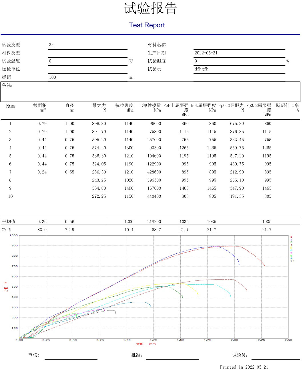 - 測試結束可自動存檔、手動存檔,測試完畢自動求算最大力量、上、下屈服強度、滯后環法、逐步逼近法、非比例延伸強度、抗拉強度、抗壓強度、任意點定伸長強度、任意點定負荷延伸、彈性模量、延伸率、剝離區間最大值、最小值、平均值、凈能量、折返能量、總能量、彎曲模量、斷點位移 x%荷重、斷點荷重 X%位移、等等。 數據備份:測試數據可保存在任意硬盤分區。